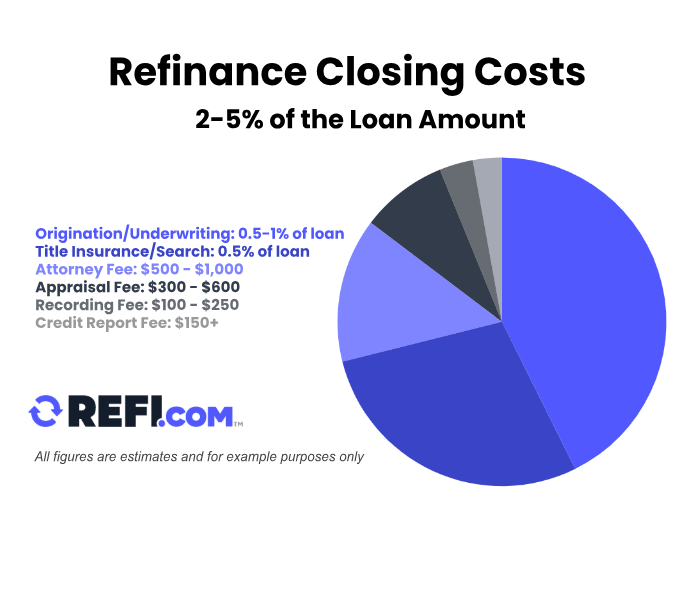 - Closing costs for refinancing can include loan origination, appraisals, title insurance, property taxes, and homeowners insurance, potentially totaling thousands of dollars.